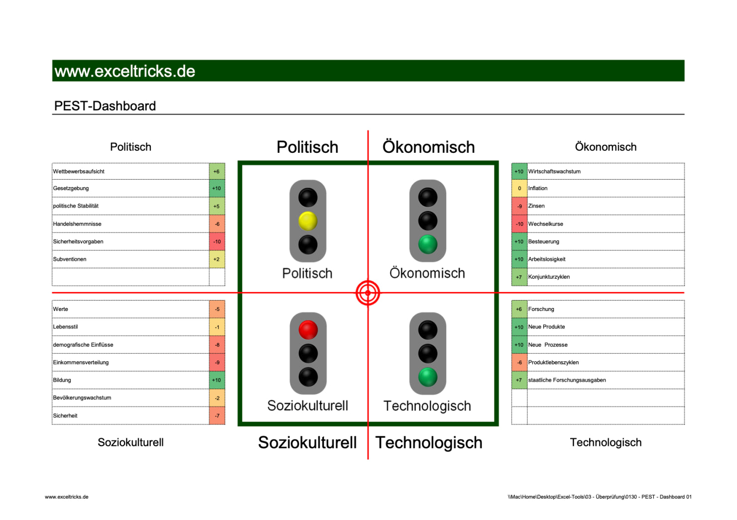 Excel-Vorlage: PEST-Dashboard (Modell 1)