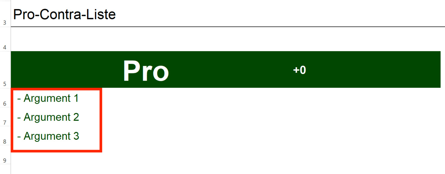 - Trage Pro- und Contra-Argumente in separate Spalten ein.