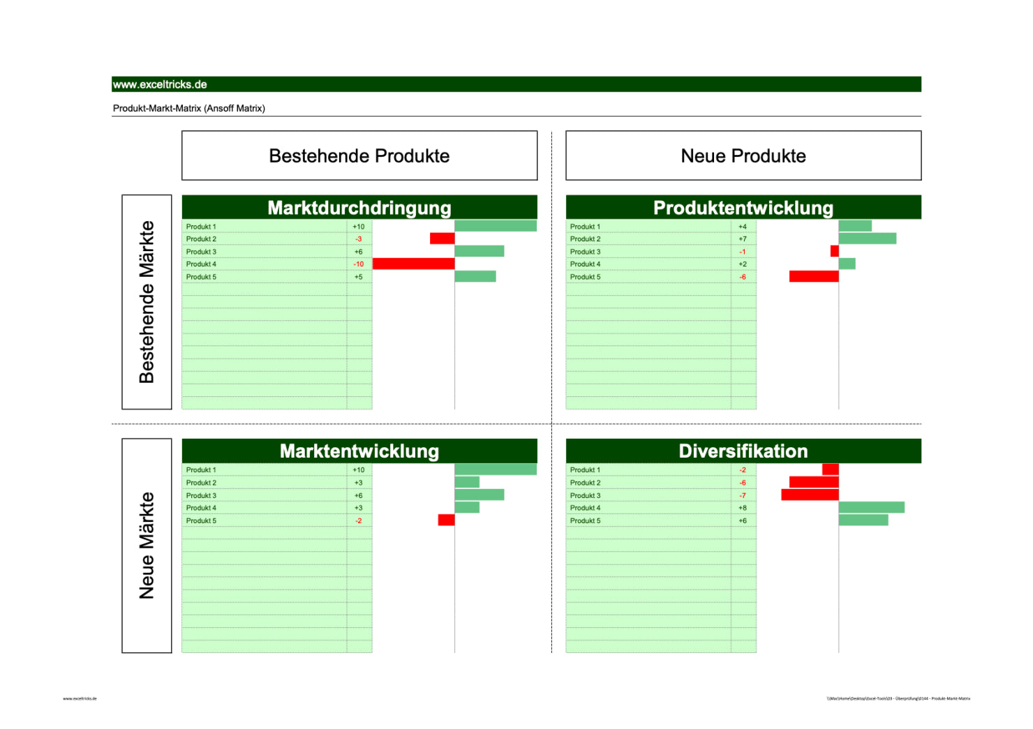 Excel-Vorlage: Produkt-Markt-Matrix (Ansoff-Matrix, Z-Matrix)