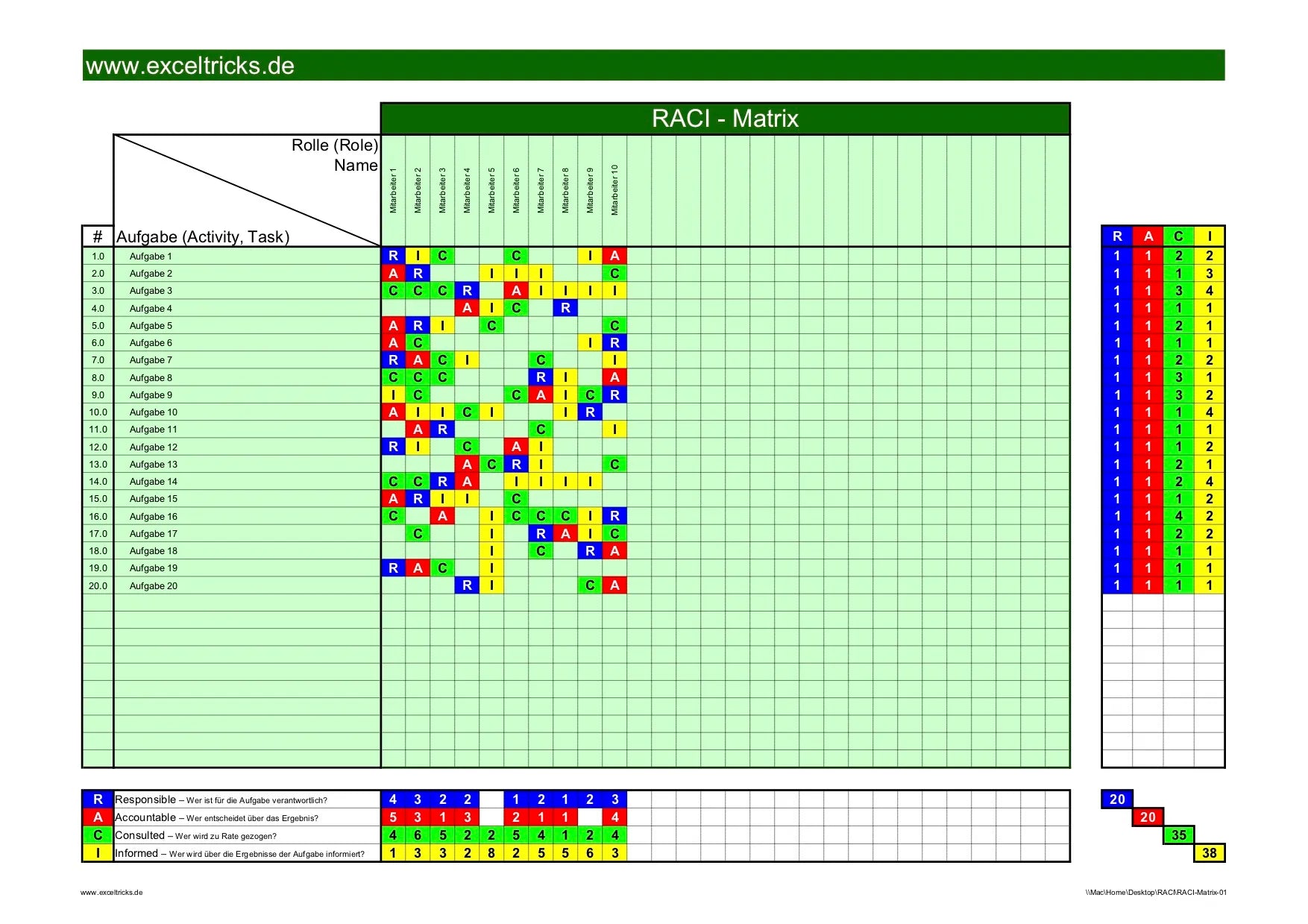 Excel-Vorlage RACI-Matrix (Modell #1) – Verantwortlichkeiten im Projekt klar zuweisen