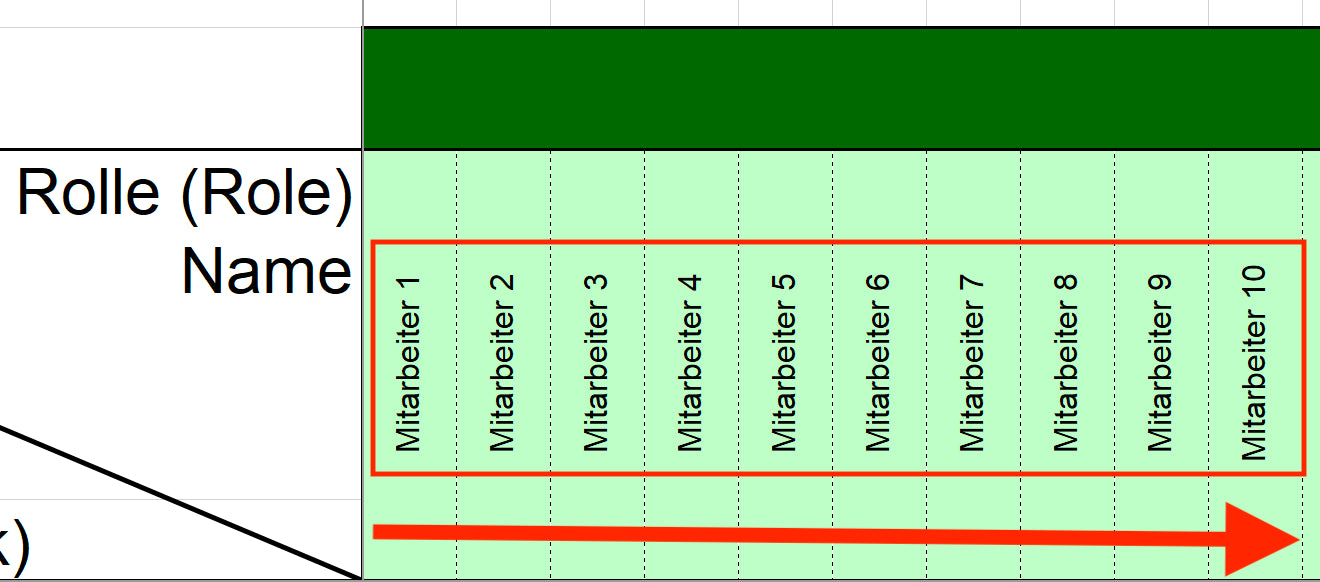 - Aufgaben/Arbeitspakete vertikal eintragen,
