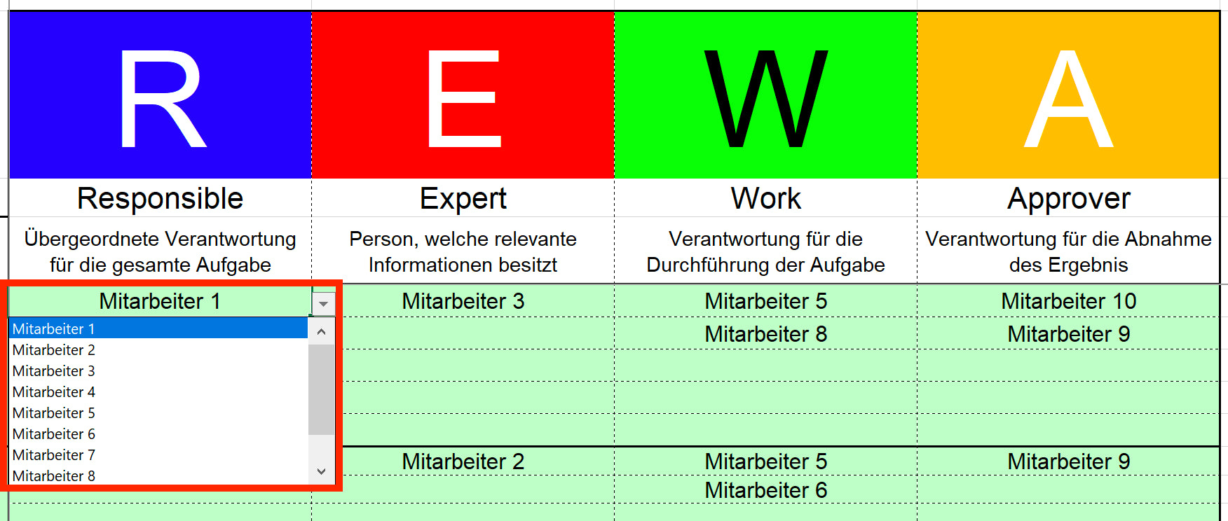 Die REWA-Matrix ist ein effektives Tool, um in Projekten den Überblick darüber zu behalten, wer für welche Aufgaben verantwortlich ist und wer über welche Aufgaben informiert sein muss. Sie stellt eine Alternative zur bekannten RACI-Matrix dar und eignet sich besonders für komplexe Projekte mit klaren Verantwortlichkeiten.