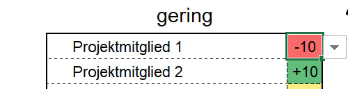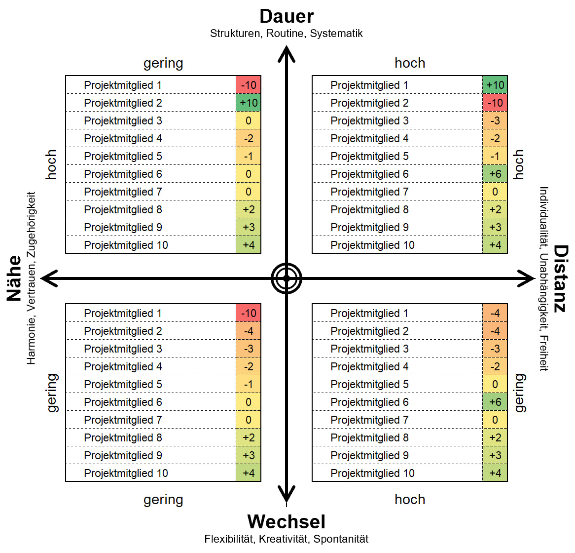 Bewertung von Nähe, Distanz, Dauer und Wechsel für jedes Teammitglied. -