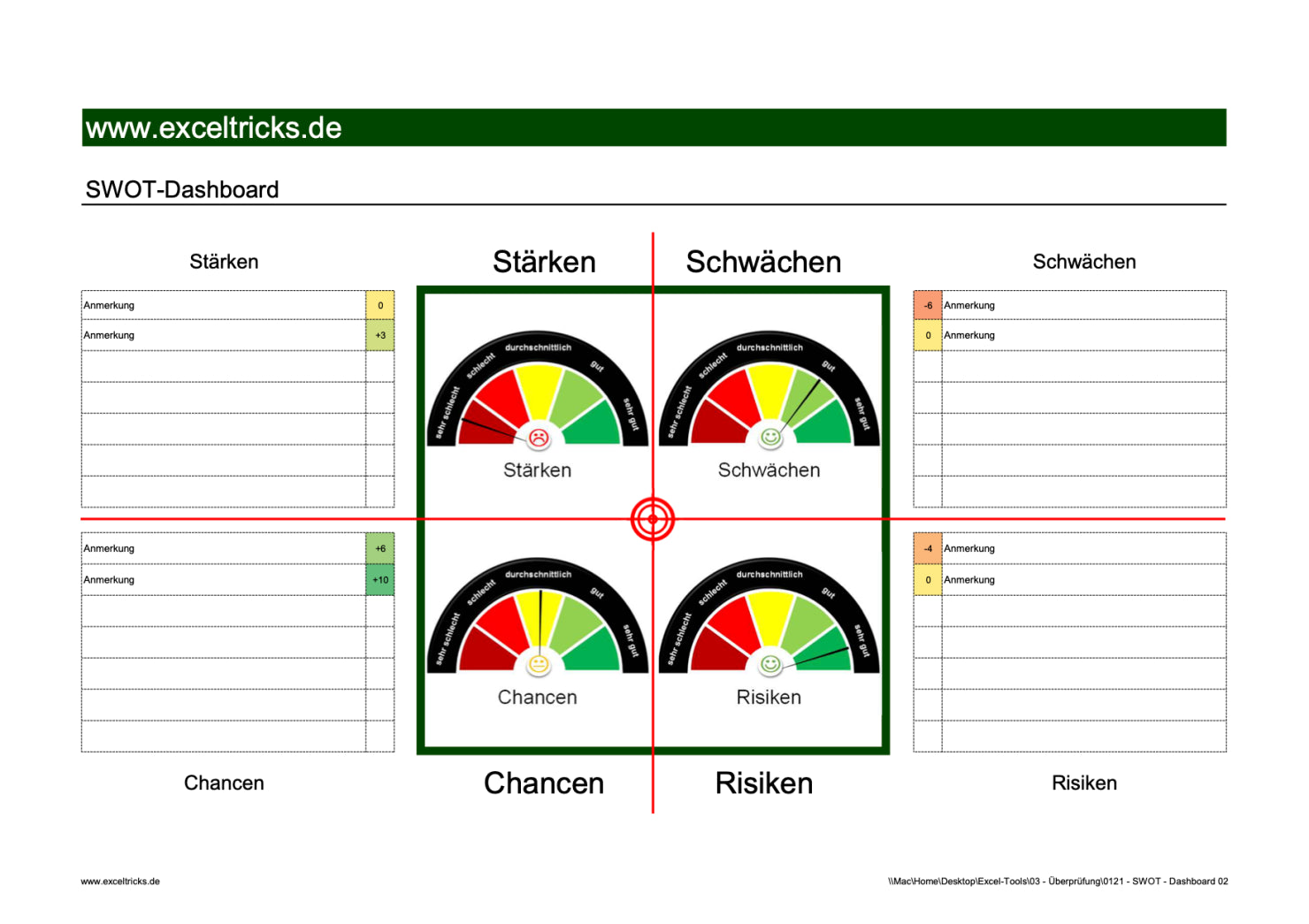 Excel-Vorlage: SWOT-Dashboard (Modell 2)